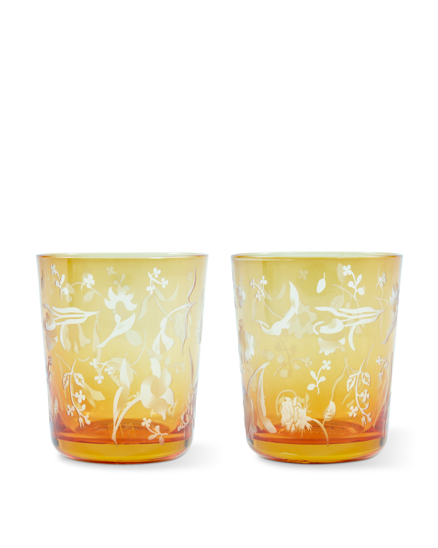 Ok er bestaat dus een 17de-eeuws tafelkleed. Destjds gemaakt voor koninklijke banketten. Zo prachtig, we kregen het gewoon niet meer uit ons hoofd. Dus dachten we: we maken er… glaswerk van! (Ja ja, we weten het, we blijven eigenwijs). De Scattered Flowers Tumblers zijn mondgeblazen van volledig gekleurd glas en subtiel gezandstraald met een bloemmotief. Krachtige kleuren, zachte uitstraling. In oranje, donkerblauw, geel en donkergroen. Om elke dag het leven mee te vieren (ze kunnen in de vaatwasser namelijk). In samenwerking met het Rijksmuseum. Verpakt als set van 2 in een gift box. Limited edition.