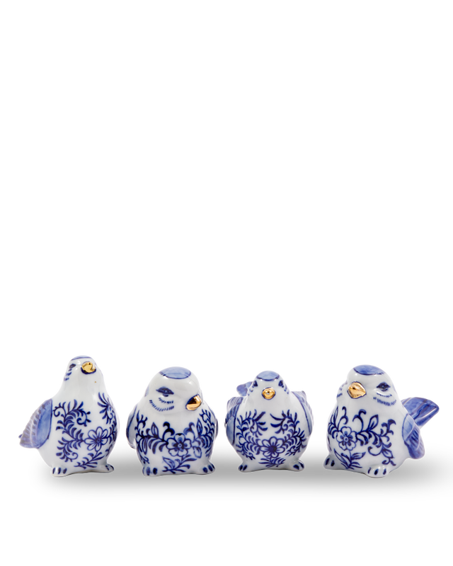 The Blue Bird Family is expanding its flock! Meet our delightful new sparrows, each hand-painted with shimmering golden accents. Crafted from fine porcelain, these whimsical little birds are ready to bring joy and a playful spirit to your home. Perfect for perching on a shelf or adding a splash of colour to your décor.
